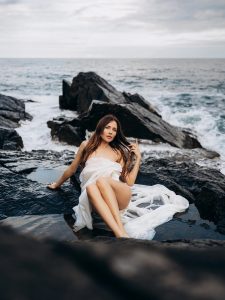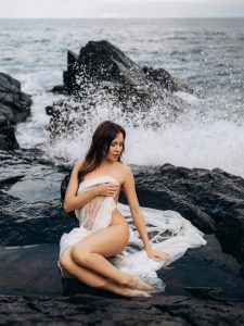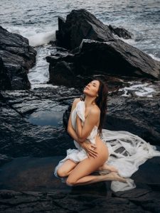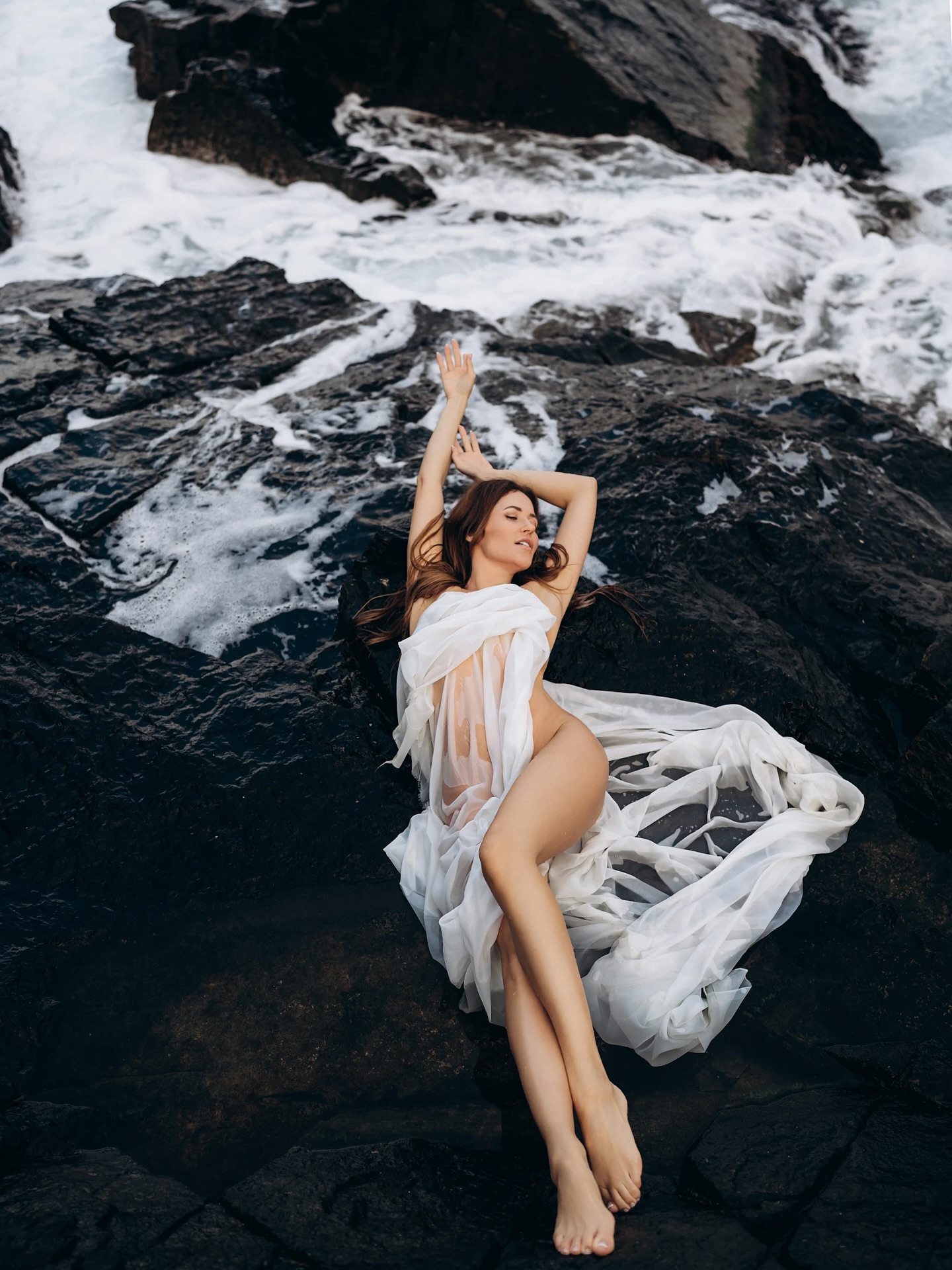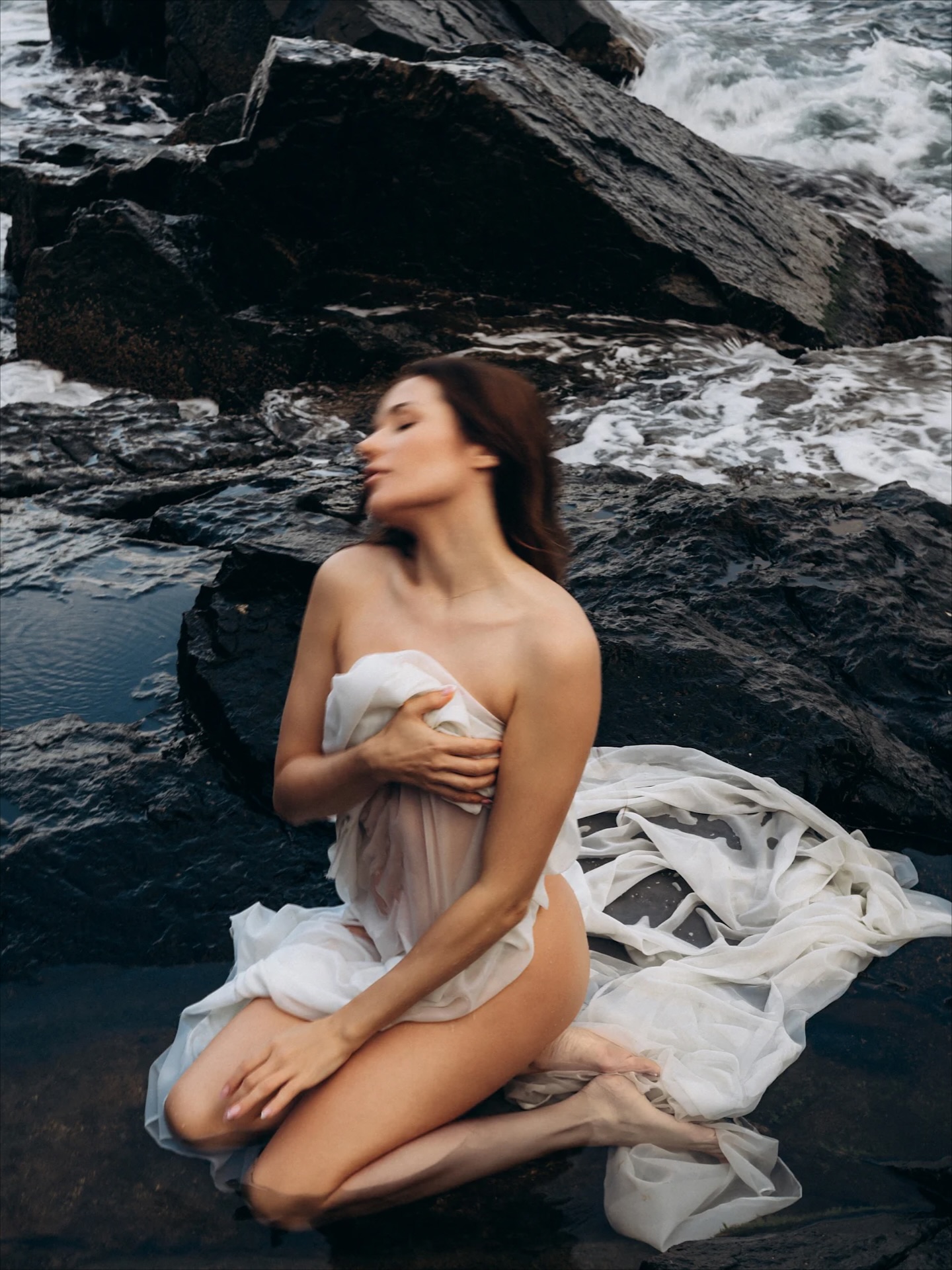 Украинская актриса Наталья Денисенко, ставшая популярной благодаря своим ролям в «Крипосной» и стендап-выступлениям, удивила поклонников не только откровенной фотосессией, но и своими стихами. 31 октября 2025 года в Instagram 35-летняя звезда поделилась кадрами с Черноморского побережья в Болгарии, где позирует обнаженной на влажных скалах, прикрываясь лишь полупрозрачной тканью. Распущенные волосы, легкий макияж и естественный свет подчеркивают ее истинную красоту и силу.
